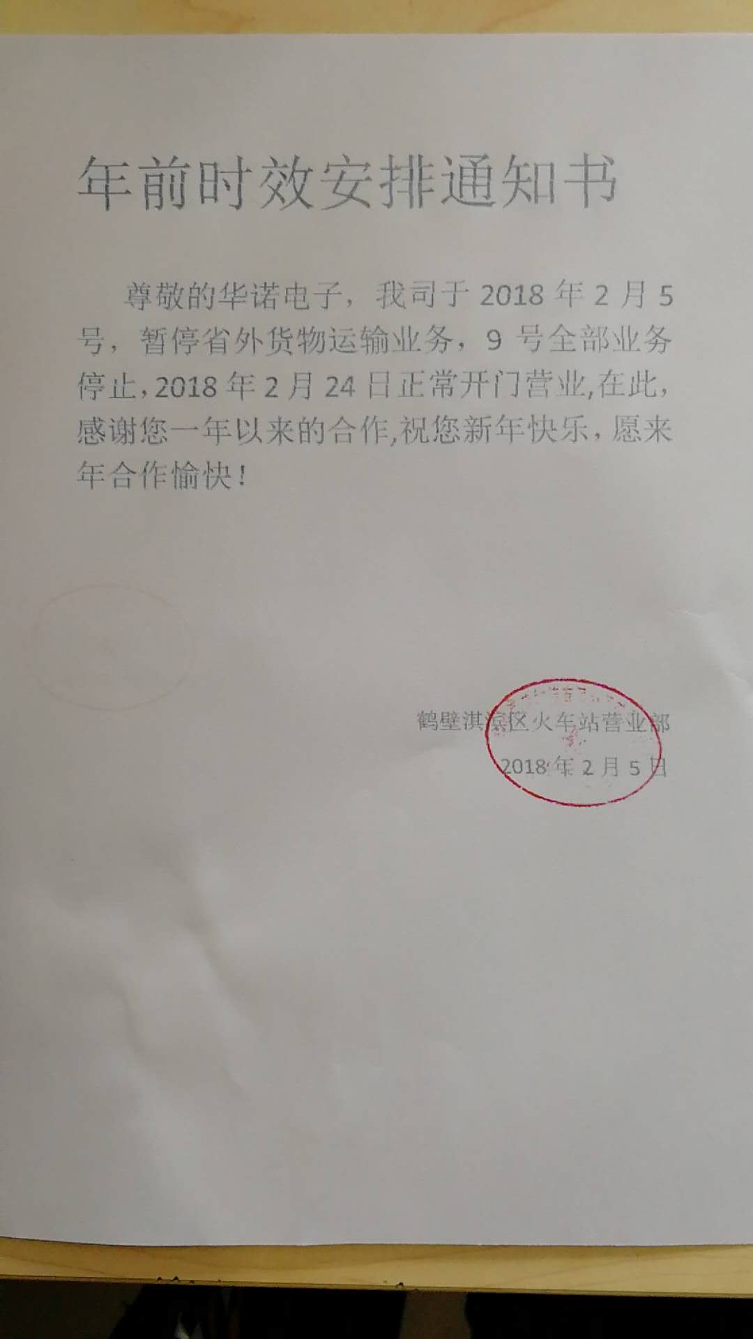 以上物流停止接貨當日及當日以后發(fā)出的貨物,我司不能保證正常的運輸?shù)截洉r效。