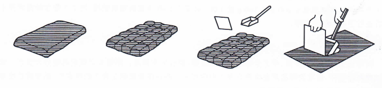 4.2.4棋盤法:適用于鋸屑和其他能用鏟勺處理的小顆粒樣品。將全部樣品置于清潔并堅硬的表面上并用鏟勺混勻。用鏟勺將樣品散布成長方形堆,堆的厚度不超過物料標稱最大粒度的3倍,用鏟勺在長方形堆的表面上輕輕劃線,分割出不少于20個部分。用鏟勺和擋板從20個部分中的每一部分取子樣,每次取樣鏟勺都插入到堆的底部。結合子樣到所需量的試樣。